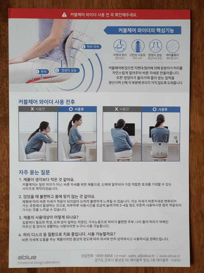 에이블루 더 넓어지고 편안해진 2020년형 바른자세 교정의자 - 커블체어 와이더 (색상 : 3종 중 택1