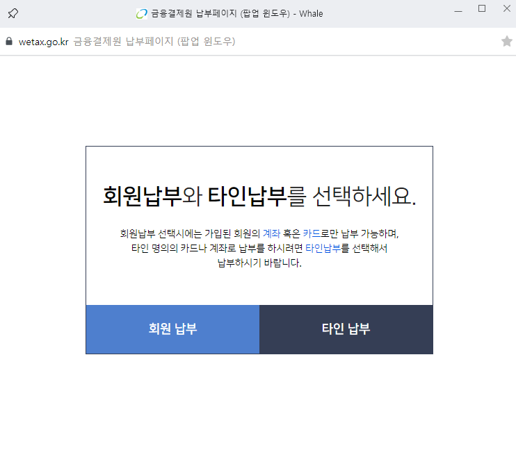 지방세의 경우 국세와 다르게 회원납부와 타인납부를 선택할수 있는데