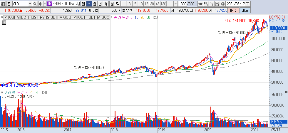 QLD (QQQ의 2배수), UDOW (DIA의 3배수)도 포함되어있습니다.