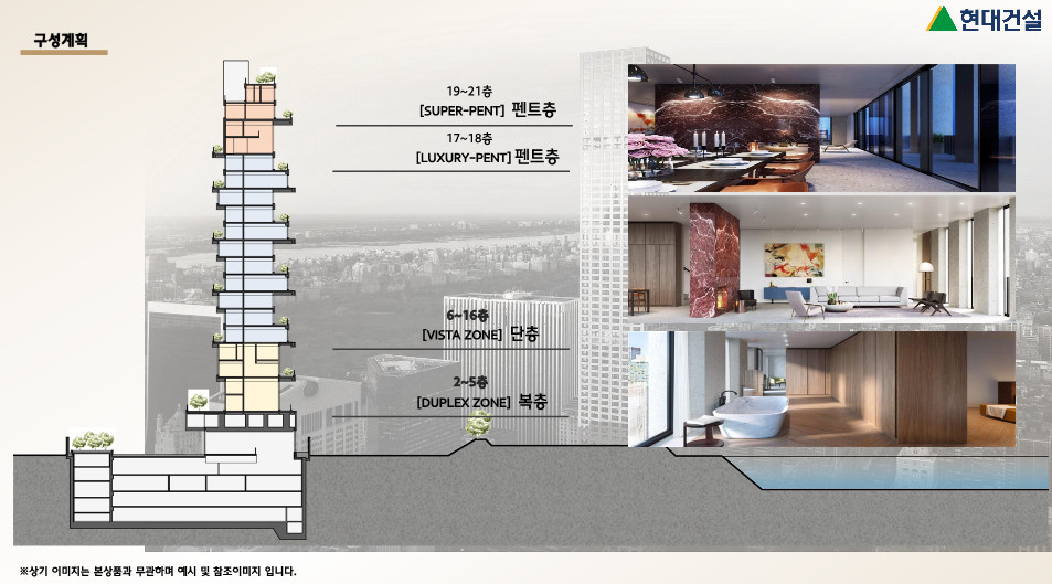 아래는 에테르노 청담으로 프로젝트명이 변경되기 전 더원 청담 추진 당시의 내부 사진이며
