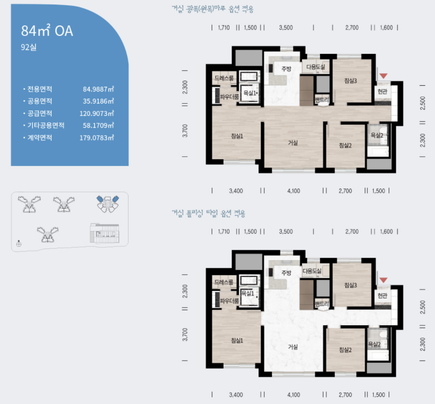 동탄역 대방2차 오피스텔 평면도 84㎡