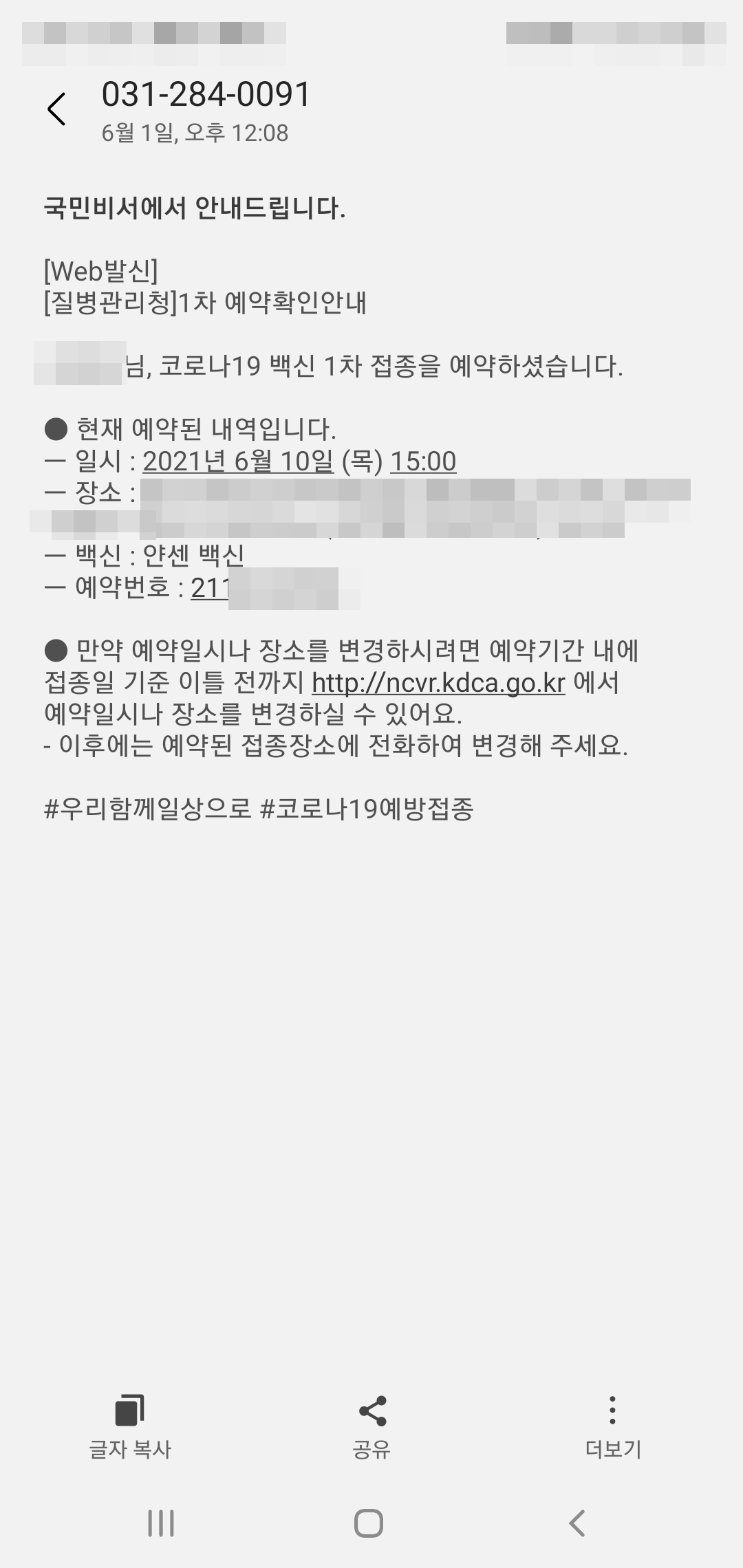 #코로나 백신 접종 예약 완료