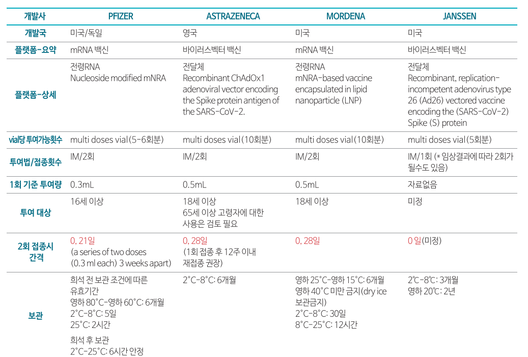 코로나19 백신별 특성