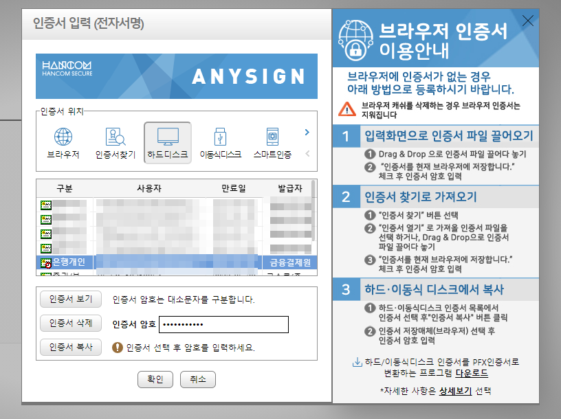 본인 명의의 공인인증서로 인증하면 로그인이 완료되어요