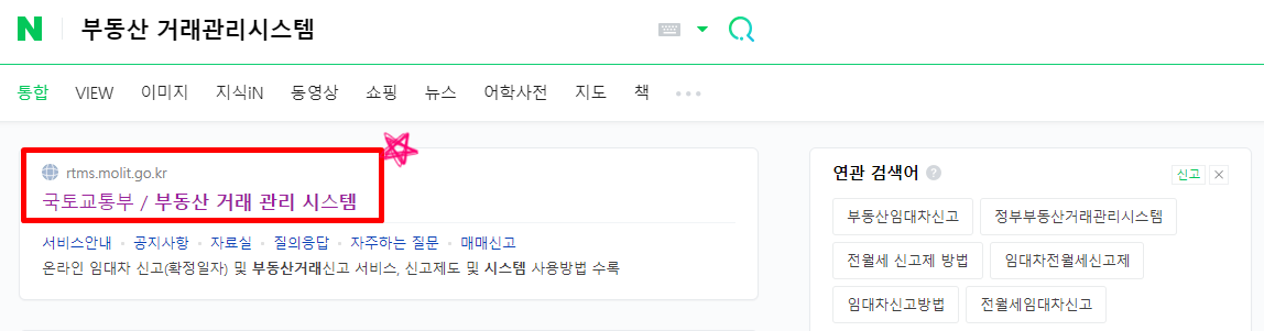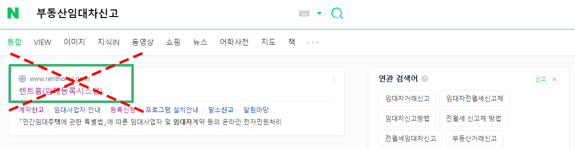 연관 검색어로 임대차신고, 주택임대차 신고제, 확정일자 등을 입력해도 가능합니다.