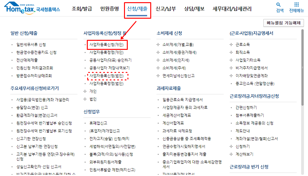 신청/제출 - 사업자등록신청(개인/법인)
