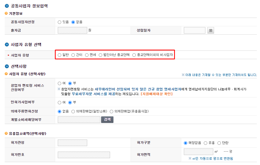 사업자 유형선택 중요한 부분이며