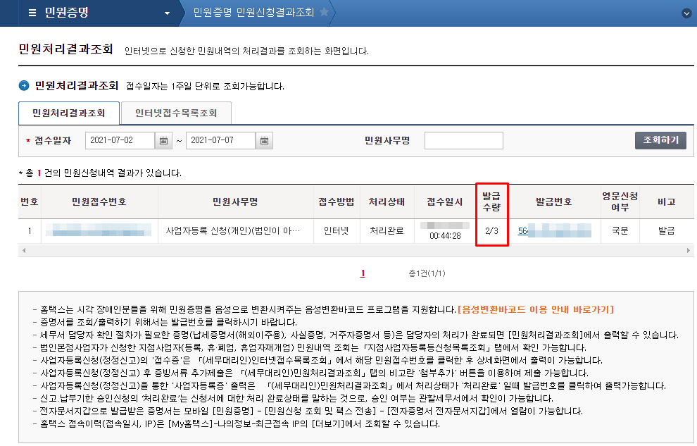 신청한 사업자 등록증은 총 3회에 발급수량이 정해져있으며