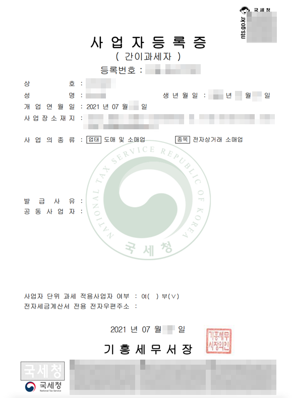예전에도 사업자 신청해본 적이있고, 비용이 들거나 큰 어려움이 없다는걸 알고 있어서