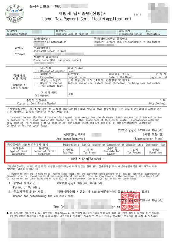 특히 지방세 징수유예 및 체납시 납세 증명서에는 해당 내용이 기재되므로