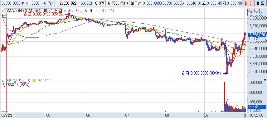 10시 30분 장 개장전에 확인해보니 3350$를 왔다갔다하더니