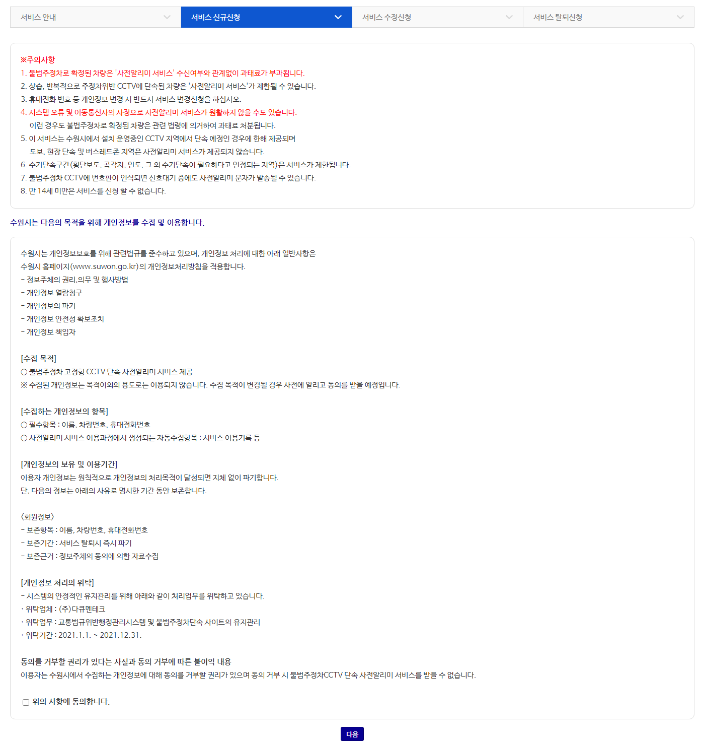 서비스 신규 신청을 클릭하여 개인정보 수집 동의후