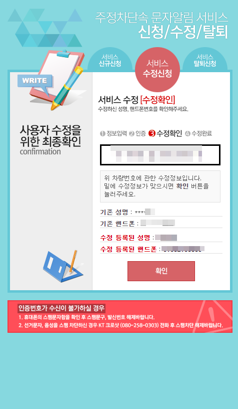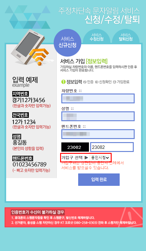 차량번호 이름 핸드폰 번호를 입력하면 됩니다.