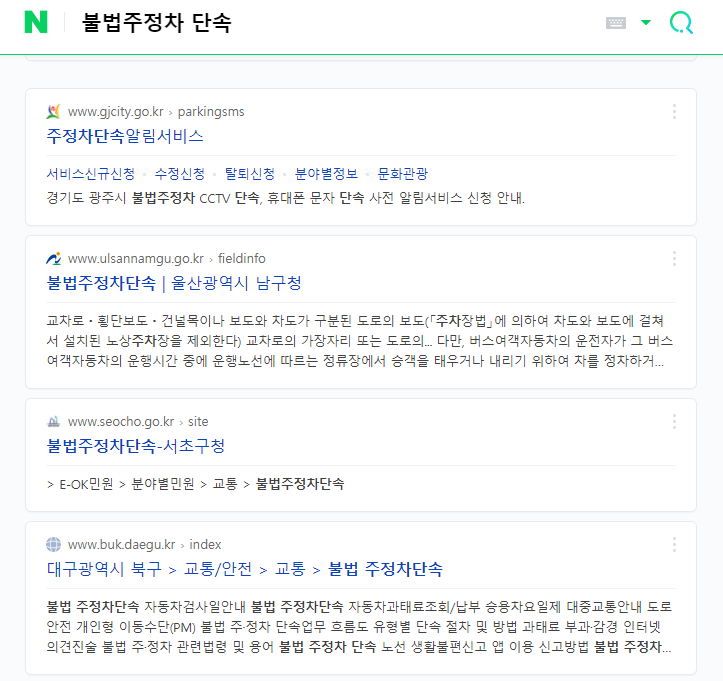 네이버에서 불법주정차 단속 검색해도 각 지자체별로 보여지구요