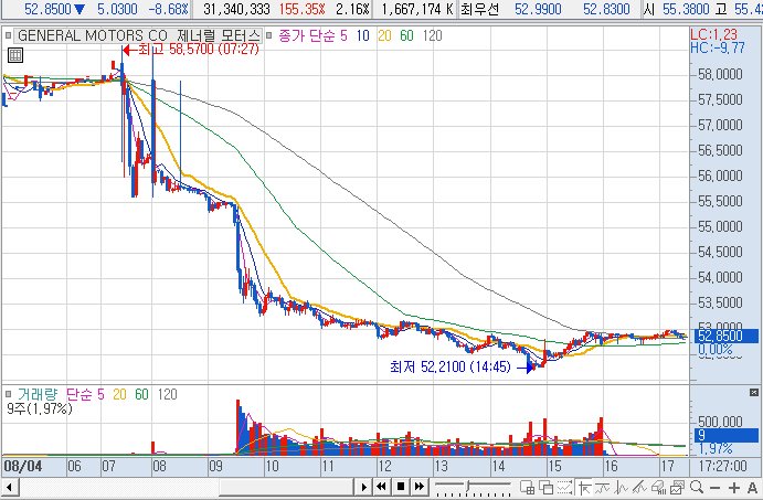 제너럴 모터스 GM이 -8%의 급락하는 모습을 보여 찾아보니 실적 발표가 있었네요