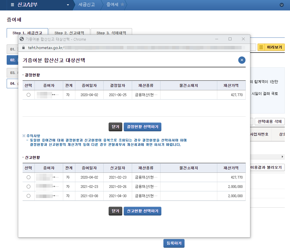 Step 2. 미성년자 증여신고 - 신고내역