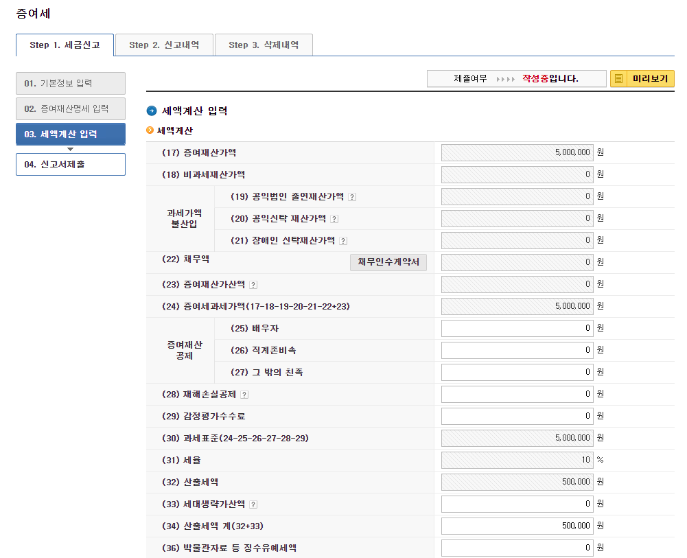 03. 미성년자 증여신고 - 세액계산 입력