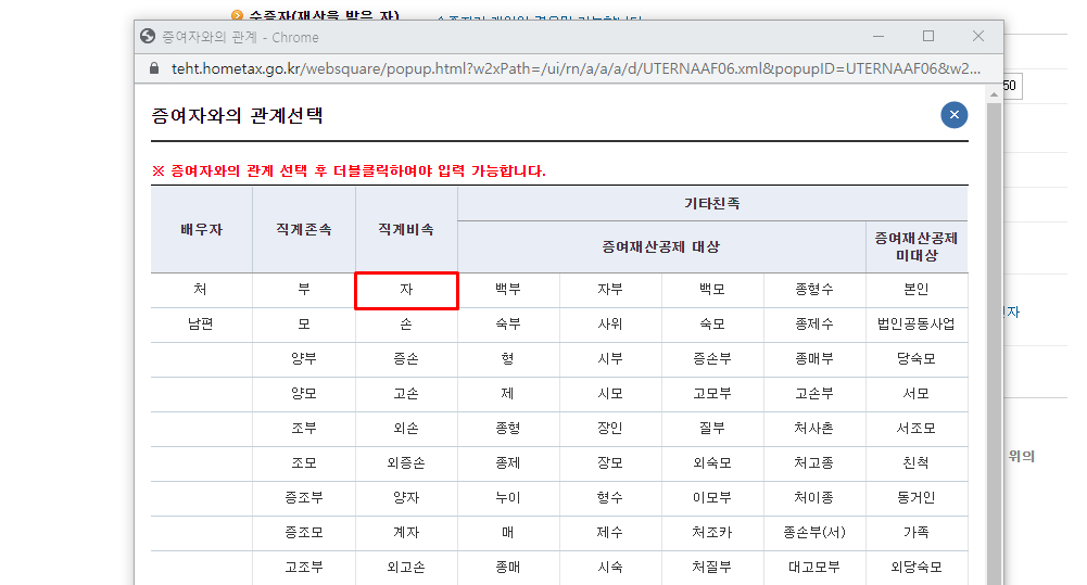 수증자 (돈 받은 사람, 자녀)의 계정으로 로그인을 해야합니다.