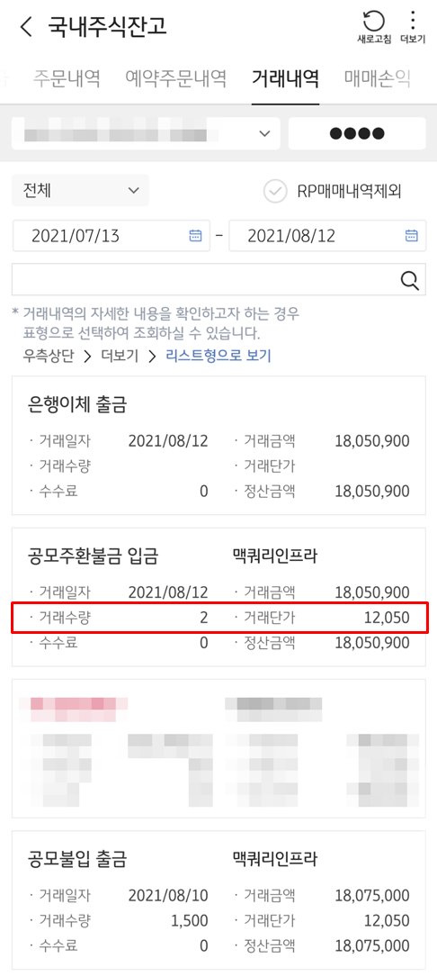 신주배정 기준일 전에 맥쿼리인프라 주식을 보유하고 있어서