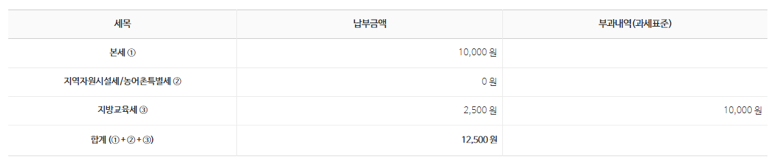 개인의 경우 본세와 지방교육세로 구성되어있음을 확인할수 있습니다.