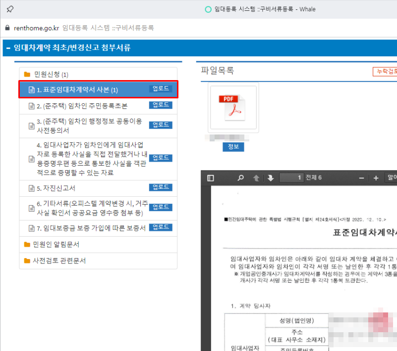 표준임대차계약서 사본은 필수 업로드 항목이며