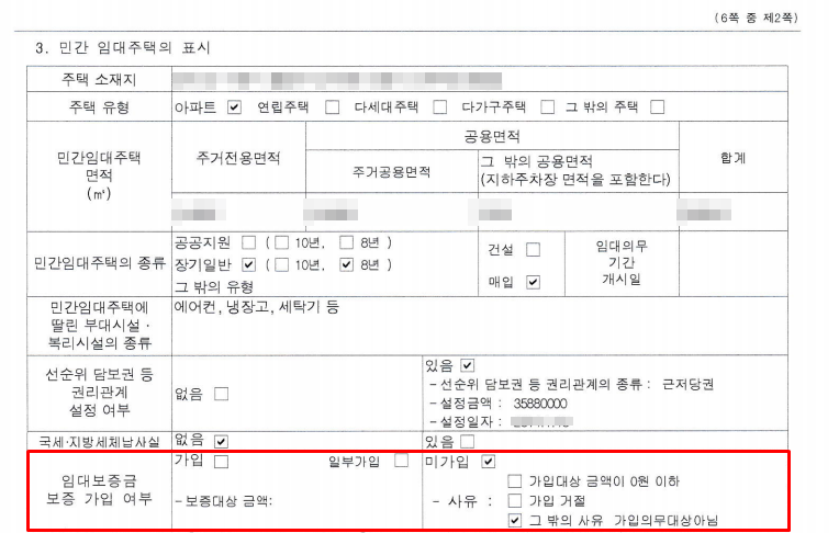 전월세 임대보증금 보증 가입 여부는 작년 부동산 대책 규제로 인해 추가된 사항이며