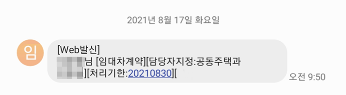 아래와 같이 임대차계약 담당자 지정문자를 받아볼수 있어요