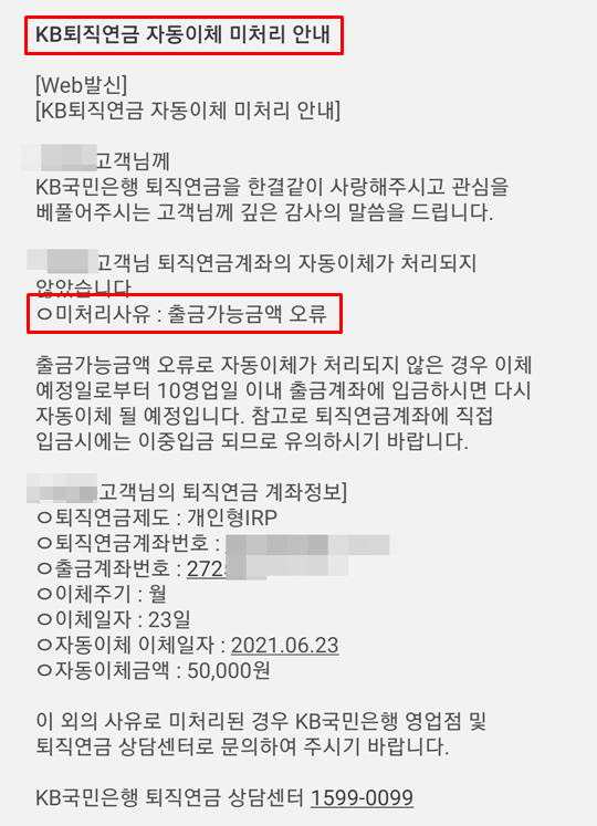 그런데 몇차례 아래와 같이 KB국민은행 퇴직연금