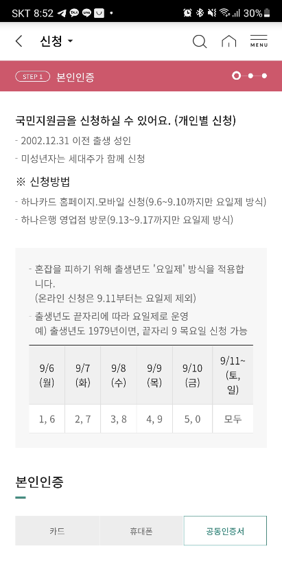 #재난지원금하나카드신청