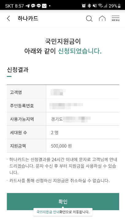 #국민지원금하나카드신청