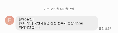 국민지원금(재난지원금) 신청 접수 안내 문자