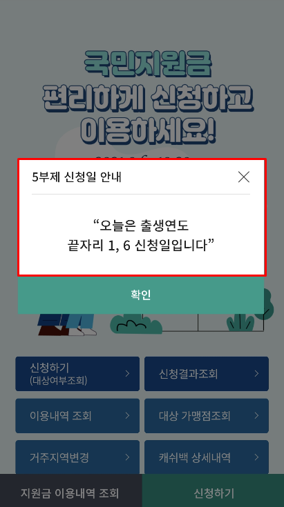 오늘은 주민등록번호 1, 6으로 끝나는 분만 신청이 되구요