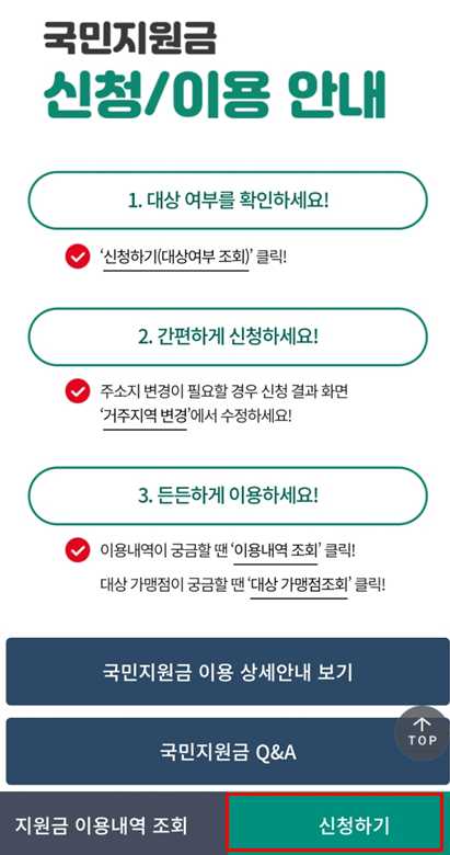 간단하게 아래와 같이 국민지원금 신청안내가 표기되며