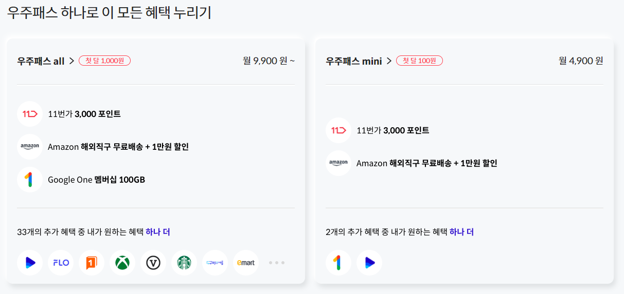 우주패스all, 우주패스mini를 구독 서비스로 제공해왔어요