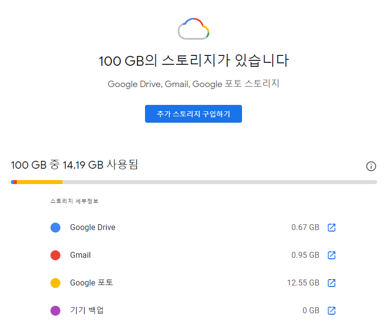 그리고 Google One에 들어가면 100GB로 늘어났어요~