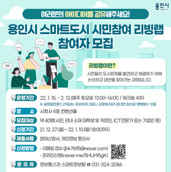 시민참여 리빙랩 활동에 관심 있으시면 신청해보셔요