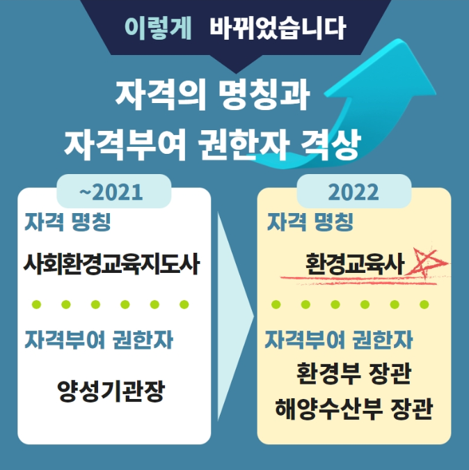 환경교육사 (구 사회환경 교육지도사) 제도가 개편되었습니다.