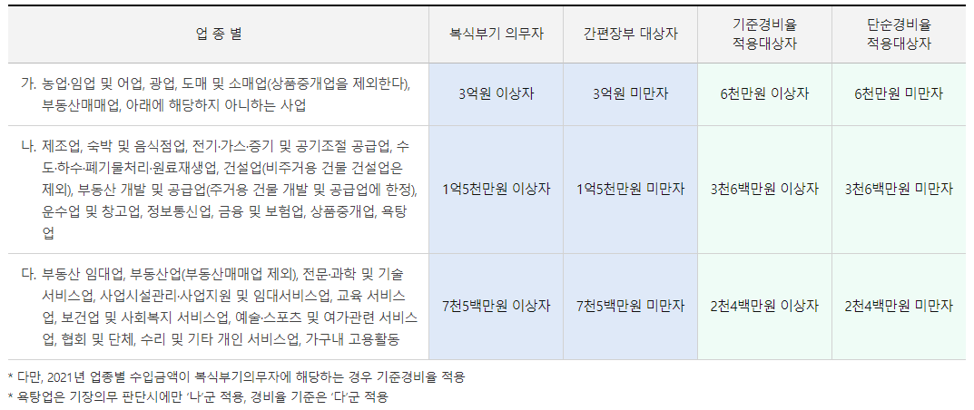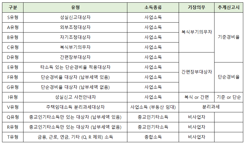 복식부기의무자 (S유형, A유형, B유형, C유형)
