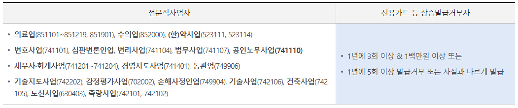단 의료업, 변호사업, 세무사업처럼 전문직 사업자등에 대한 예외는 있어요