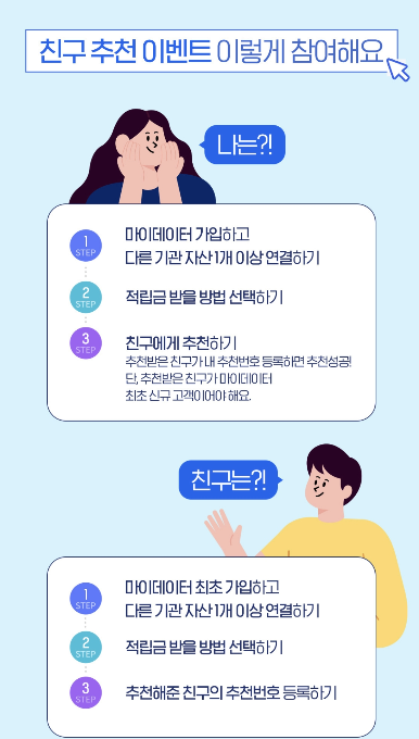 ③ 추천받은 친구가 마이데이터 최초 가입하고 다른 기관 자산 1개 이상 연결 후