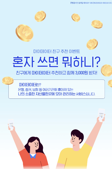 최근 금융사마다 마이데이터 서비스 고객 확보를 위해 다양한 이벤트를 많이하고 있는데요