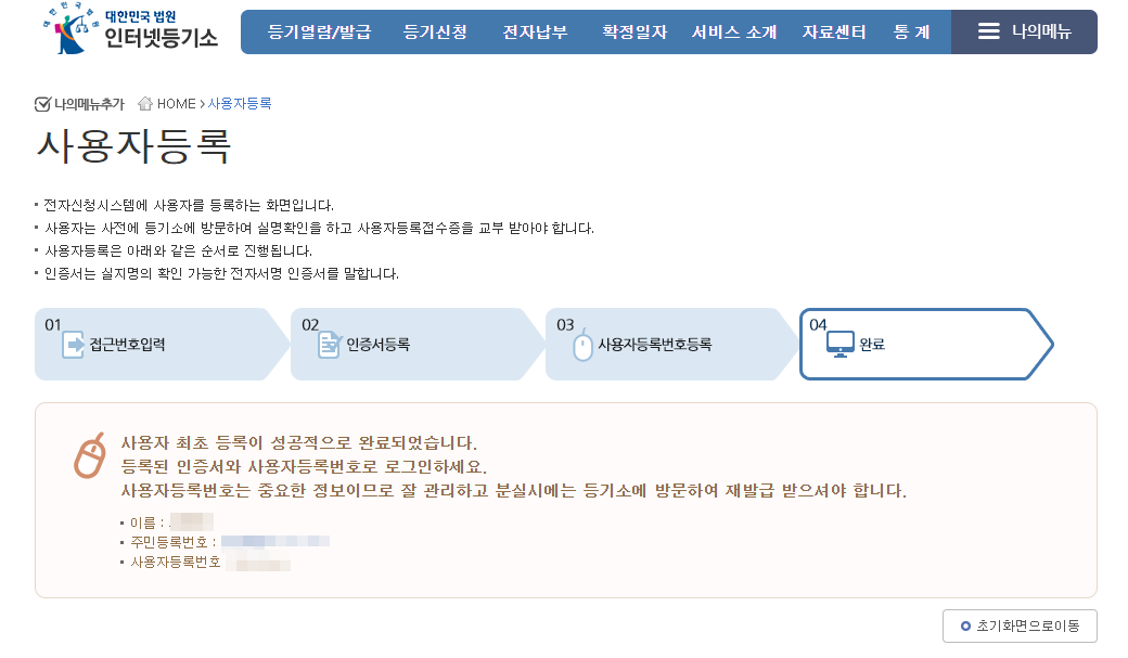 사용자번호 분실시 등기소 방문 재발급이니 꼭 기억해두셔야겠습니다.