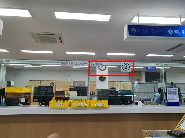 전자신청사용자 등록은 번호표 없이 안내 창구(동수원등기소는 2번)로 알려주셨어요