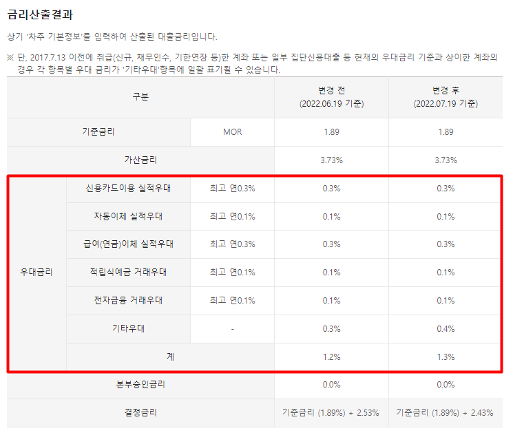 우대금리항목은 아래와 같으니 참고해주세요