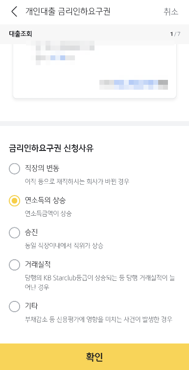 이제 실제로 금리인하 요구권의 신청사유에 해당하는지