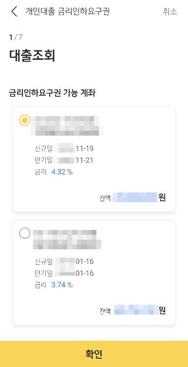 금리인하요구권 신청 여부 및 금리 결과를 안내 받게됩니다.