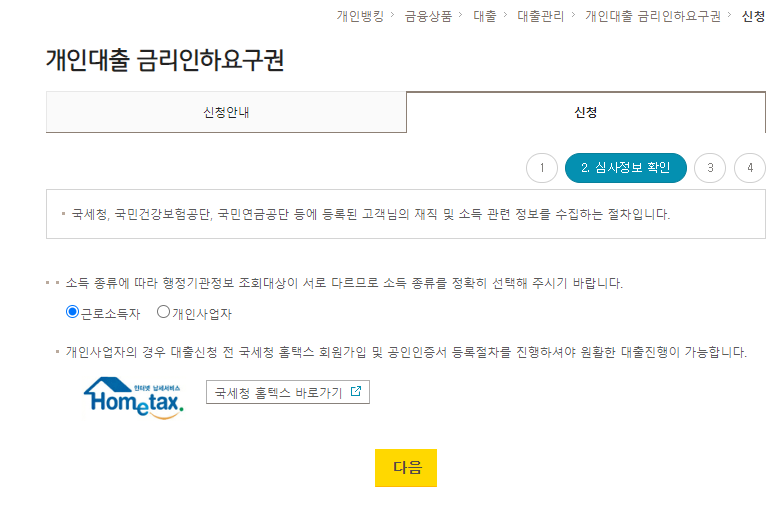 이수 심사 결과에 따라 금리 인하 승인 여부를 확인하실수가 있습니다.