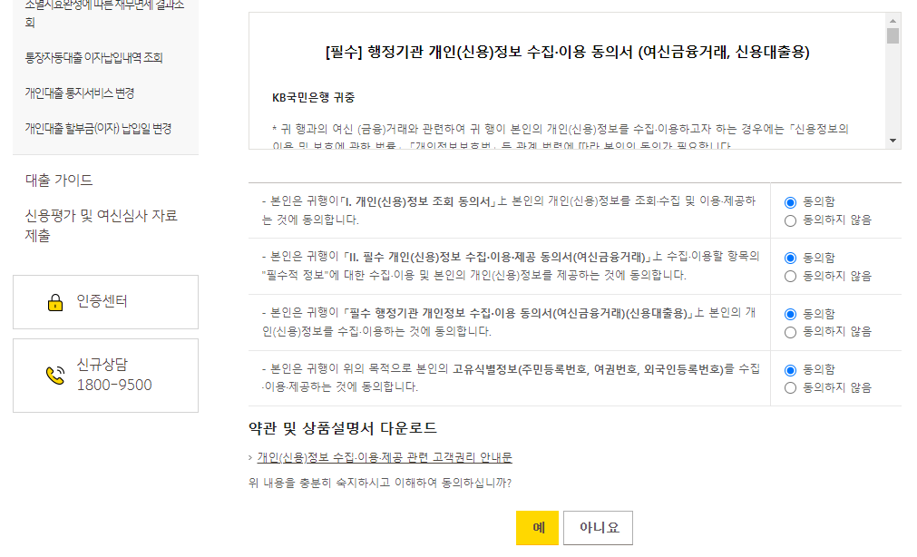 그리고 국민은행에서 신용대출, 담보대출을 이용중이시라면