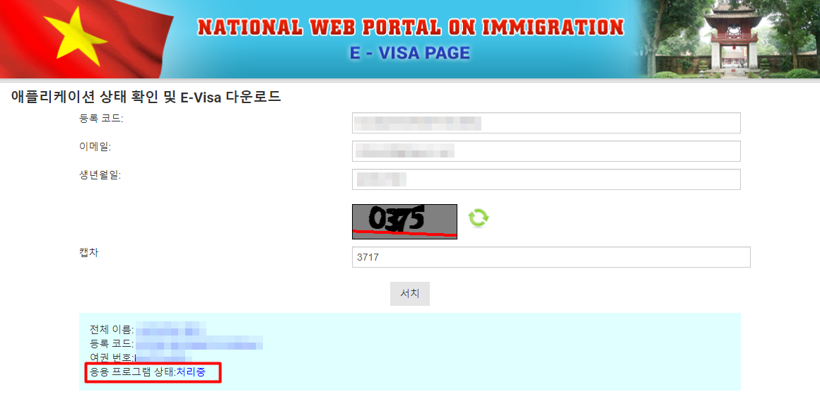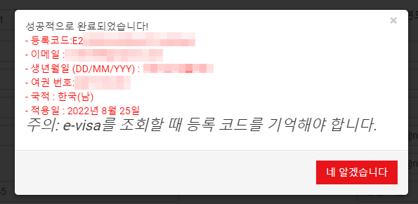드이어 베트남 E-VISA 신청이 완료되었어요
