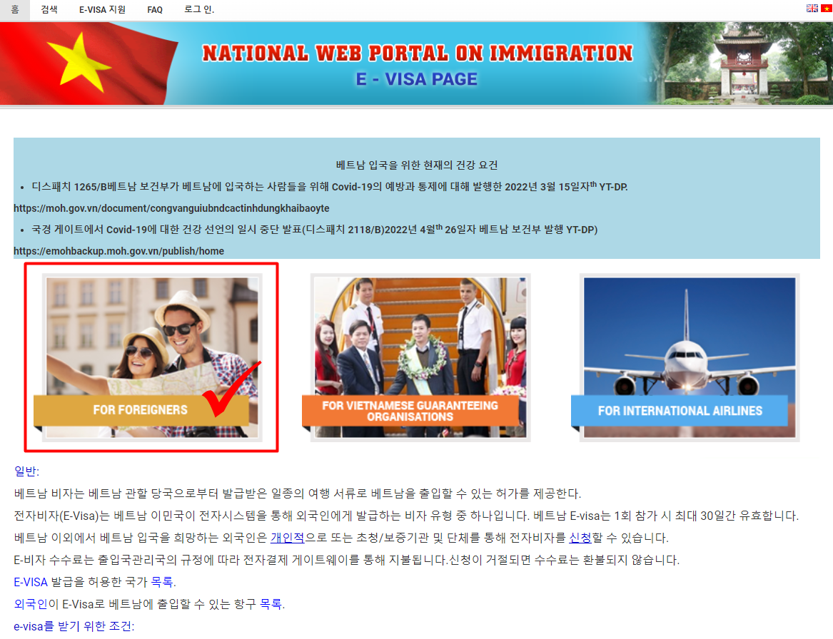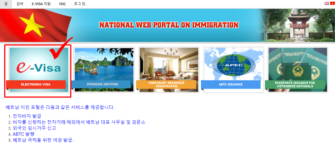 먼저 아래의 베트남 E-VISA 신청하는 사이트에 접속합니다.